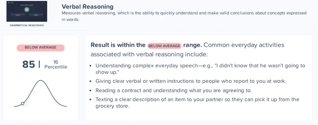 Verbal reasoning is the ability to understand language, compare ideas, make sense of words, and think through information that is spoken or written. It affects comprehension, conversation, learning, and decision making.